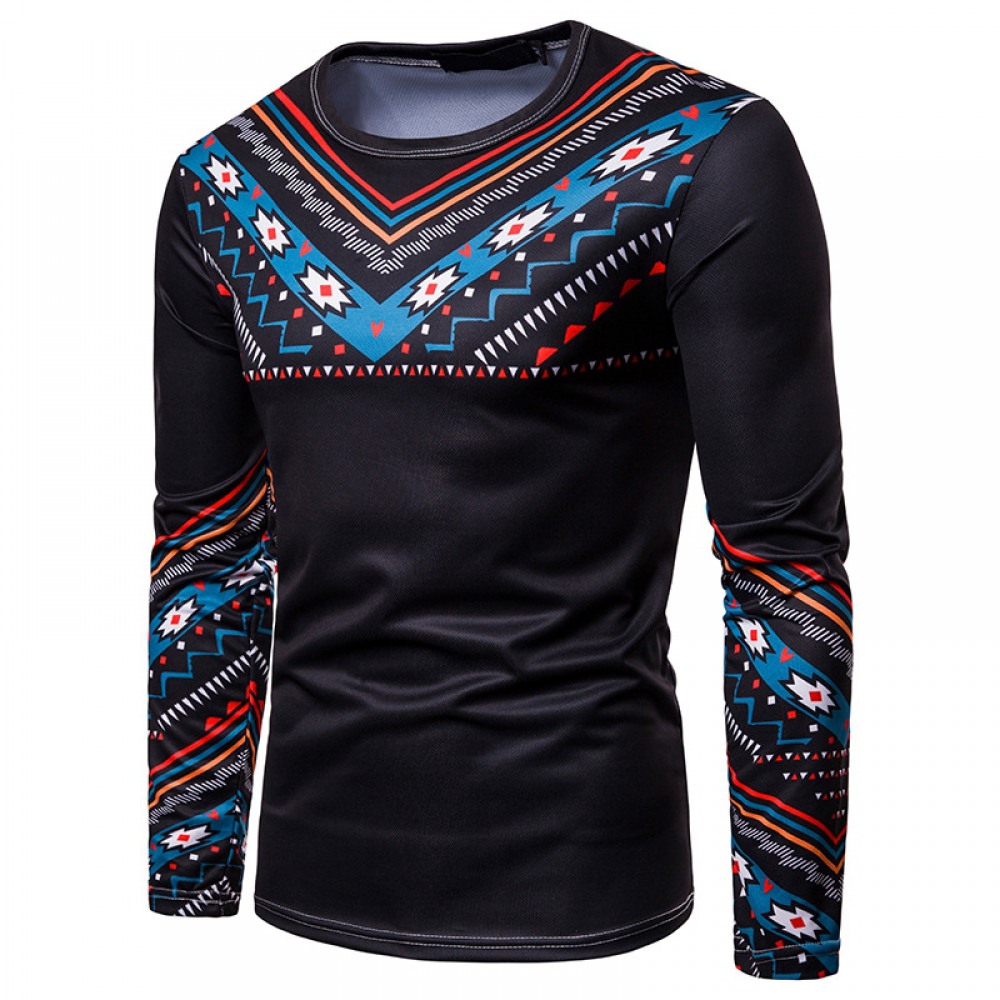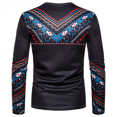 Men's Personality Clan Style Print Round Neck Long Sleeve T-Shirt