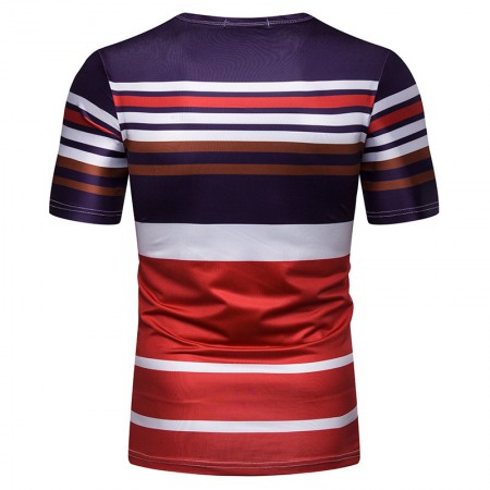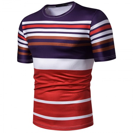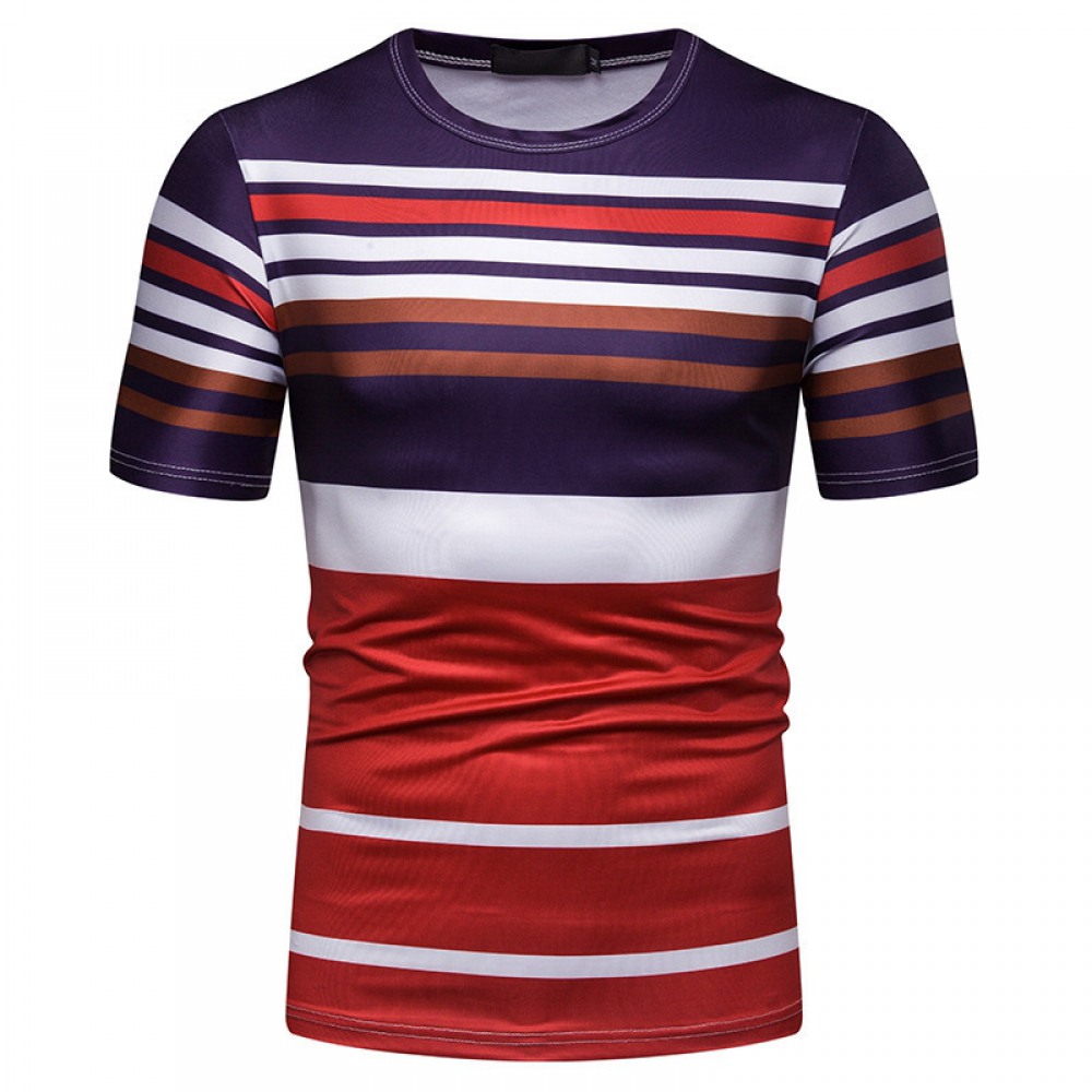 Men's Short-Sleeved T-Shirt Mens Contrast Striped Slim Casual T-Shirt