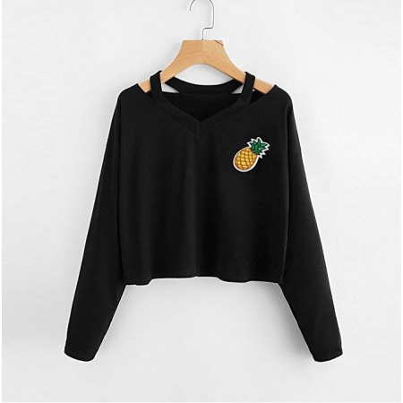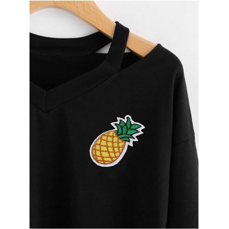 V-Neck Pineapple Embroidery Short Long-Sleeved T-Shirt