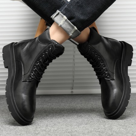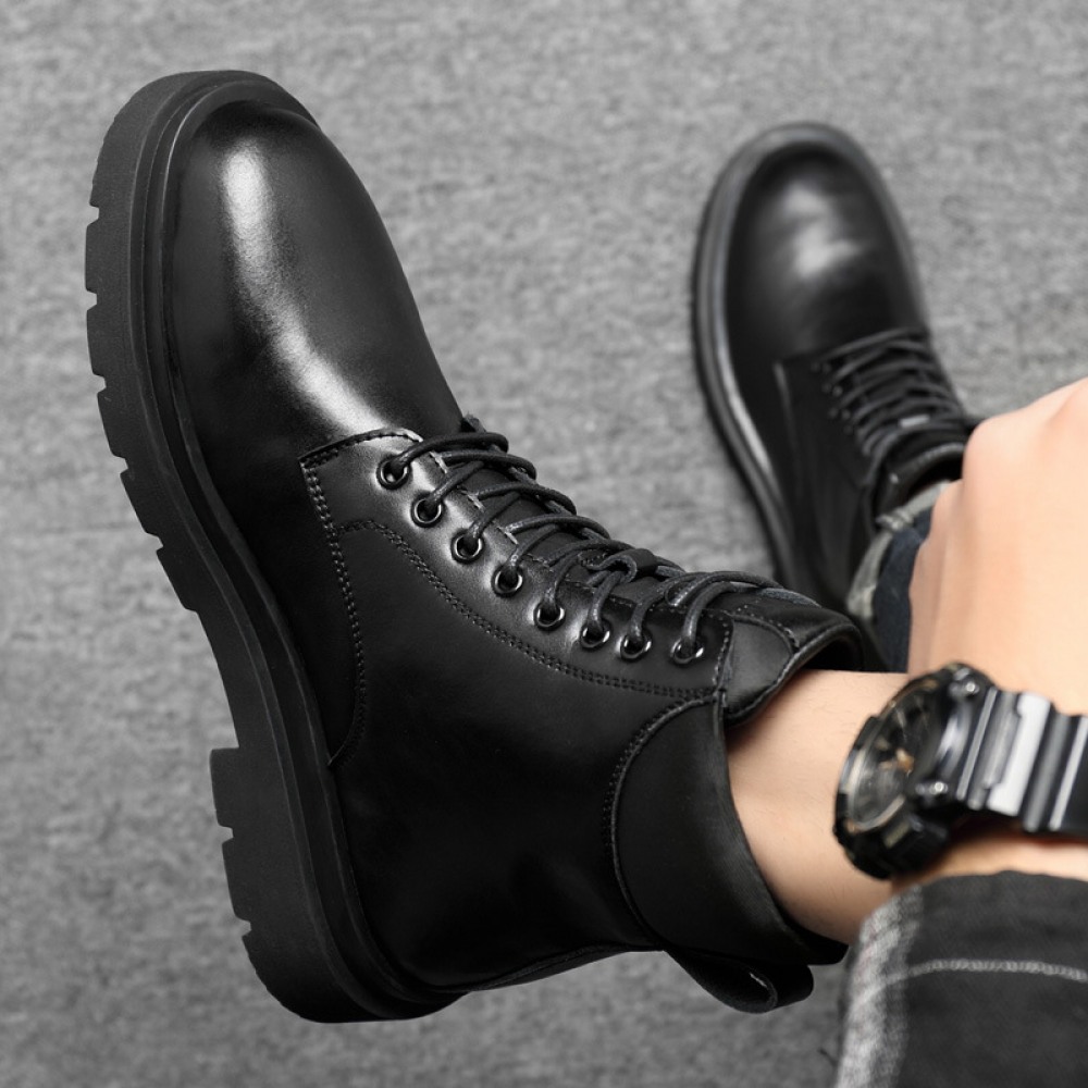 Men's High Top Shoes Leather Casual Martin Boots Leather Shoes Autumn Trendy Shoe