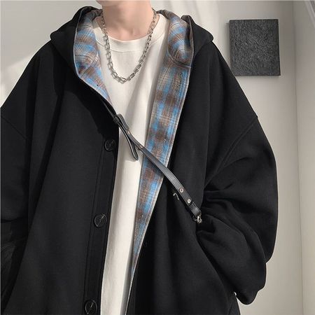Men's Stitched Plaid Hooded Sweatshirt Trendy Cardigan Jacket